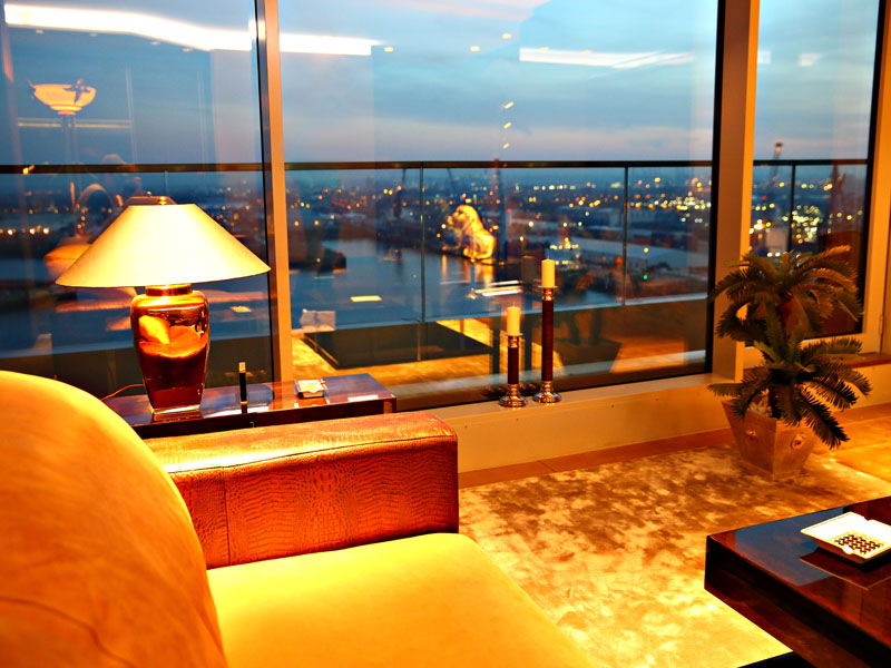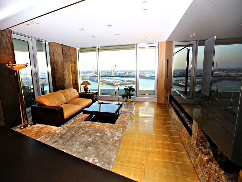 Die exklusivsten Materialien, ob modern oder klassisch wurden verarbeitet. Durch die zusätzliche Vollausstattung in Sachen Technik und natürlich die Aussicht auf den Hafen und über Hamburg zählt das Penthouse zu den exklusivsten Bundesweit.