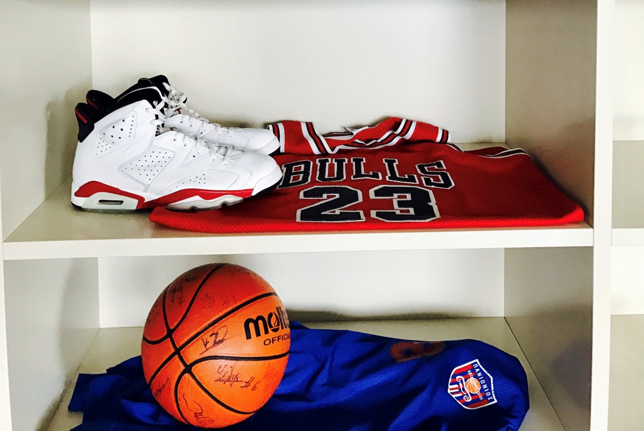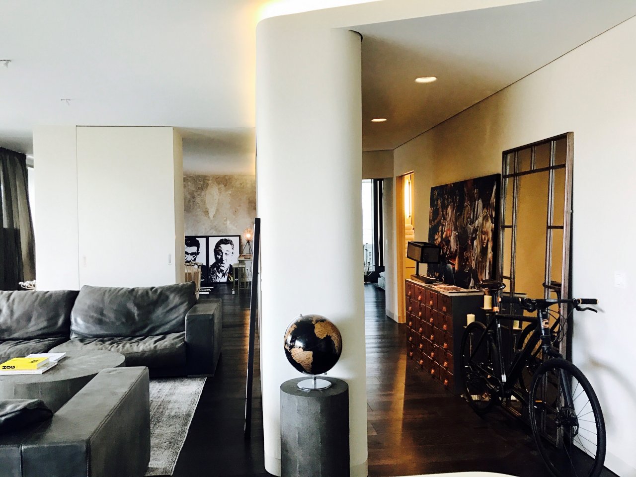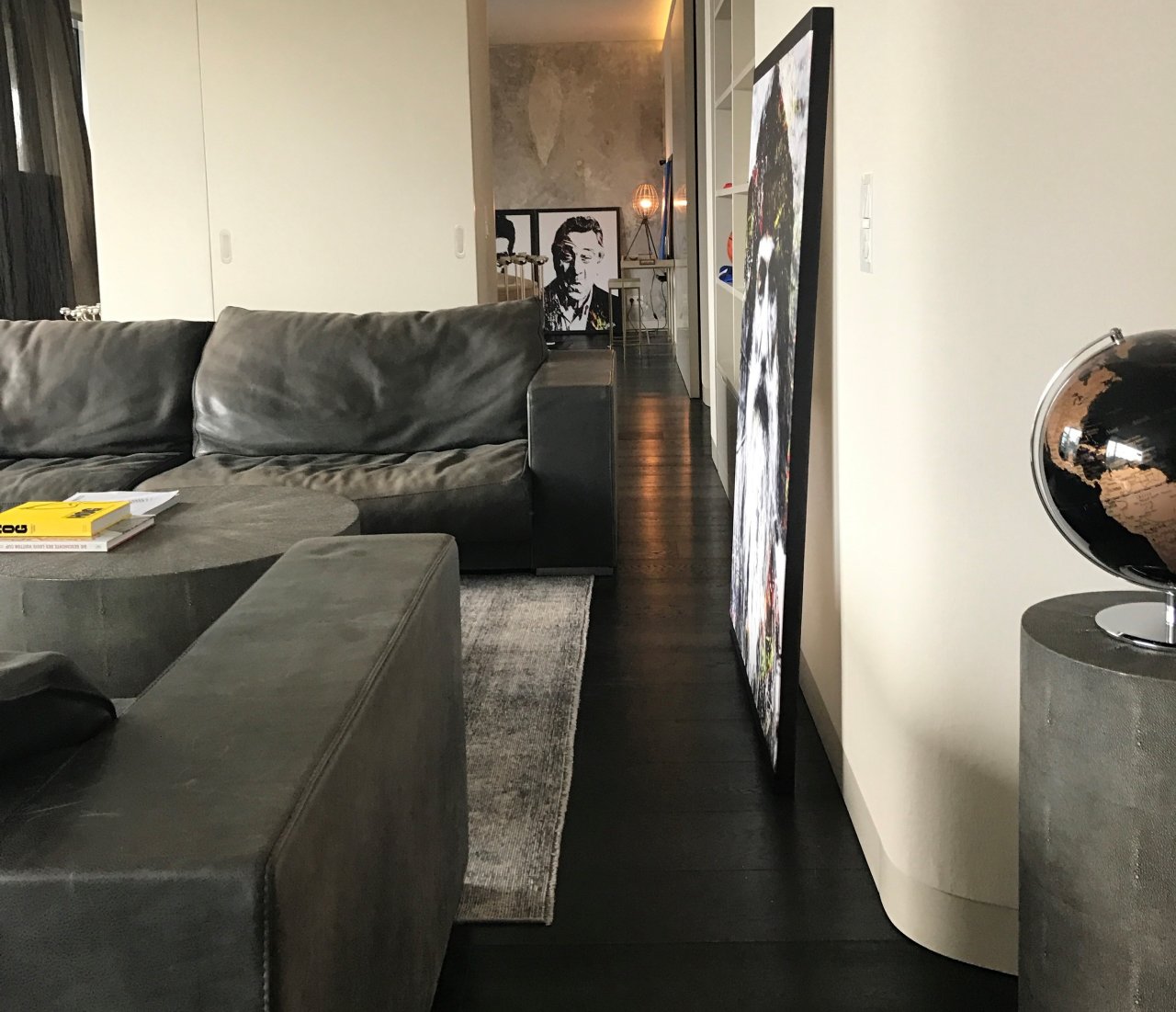 Bilder von einem befreundeten Künstler, Sport und Filmaccesoires verleihen der Wohnung das Persönliche.